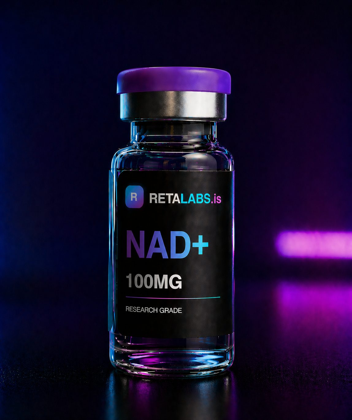 RetaLABS NAD+ 100mg is a lyophilised research vial of nicotinamide adenine dinucleotide — the oxidised form of a coenzyme central to cellular energy metabolism. NAD+ is an essential cofactor in redox reactions, a substrate for sirtuin deacetylases (SIRT1-7), and a substrate for PARP enzymes involved in DNA repair. It is widely researched in the context of ageing, mitochondrial function, and metabolic disease.