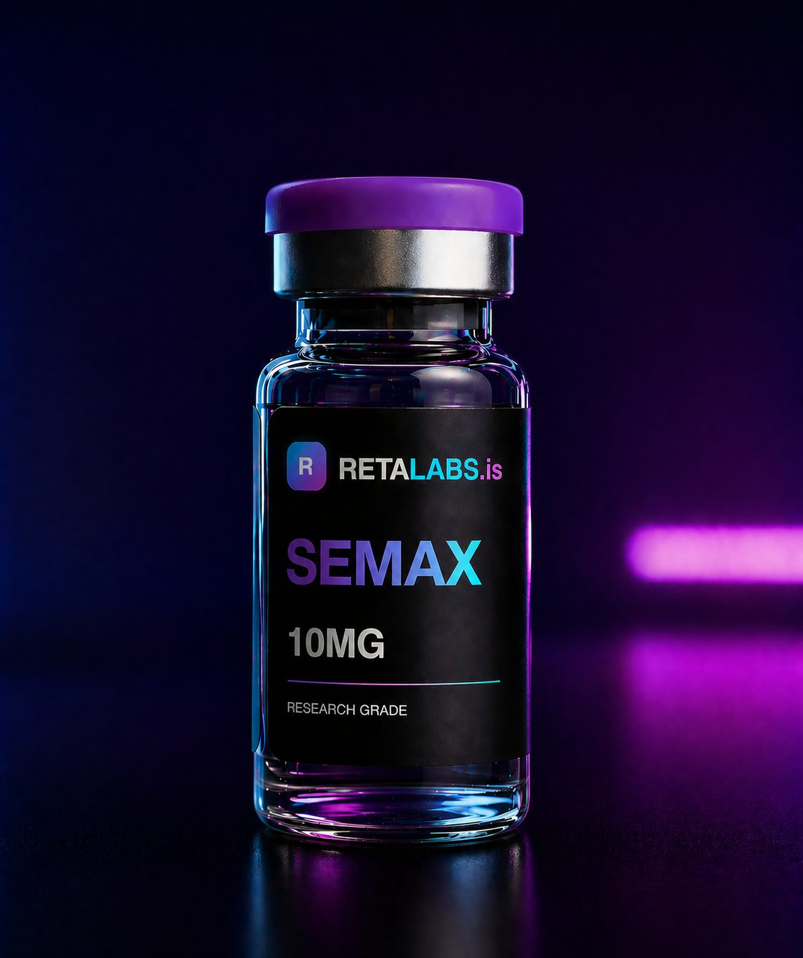 RetaLABS Semax 10mg is a lyophilised research vial of the synthetic heptapeptide Met-Glu-His-Phe-Pro-Gly-Pro — an analogue of the ACTH(4-7) sequence extended with Pro-Gly-Pro for metabolic stability. Semax was developed at the Institute of Molecular Genetics (Russian Academy of Sciences) and is researched for its nootropic, neuroprotective, and BDNF-upregulating properties in CNS research models.